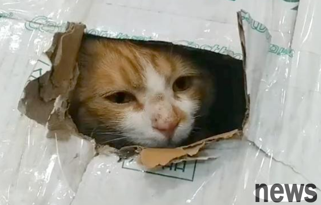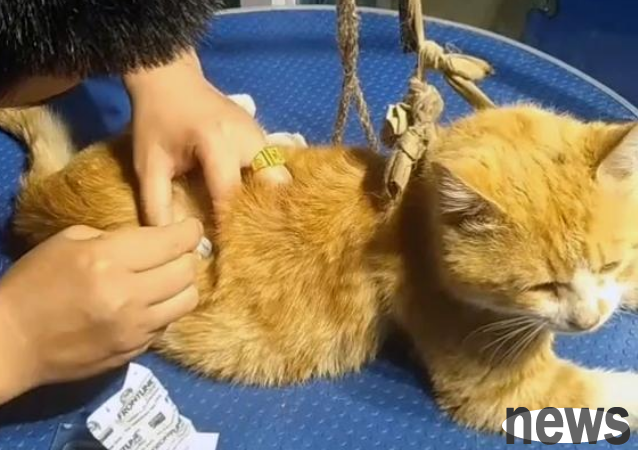In early May, when a poop scraper went out, he saw a cat on the side of the road. The dirty orange cat was lying on the road like a puddle of mud. There was something on its neck that shocked the poop scraper.