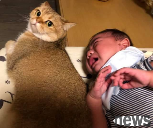 It turns out that Yuanyuan took the cat food from the rice bowl to the baby's pillow, wanting to share her most beloved things and comfort the baby not to cry. Although the baby couldn't understand Sister Cat's heart-warming behavior and continued to cry, the owner felt warm in his heart. It turns out that Yuanyuan also loves the baby very much, but in her own way.