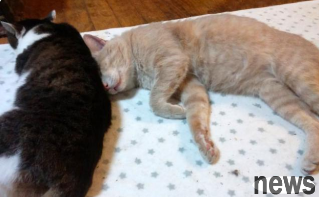 Worried that the cat’s fur would be burnt by the heater, the poop scraper opened the bedroom door and entered the living room, but was shocked by the scene in front of him. The two cats in the house turned into three cats. An orange cat appeared out of nowhere, and the three cats were lying on the blanket together, sleeping soundly.
