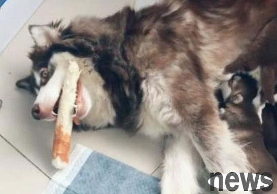 Dogs are eaters and are unwilling to give up food at any time. Look at this dog mother who is still holding snacks in her mouth when she is feeding her child. She is reluctant to open her mouth and bites it in her mouth until she finishes feeding her child.