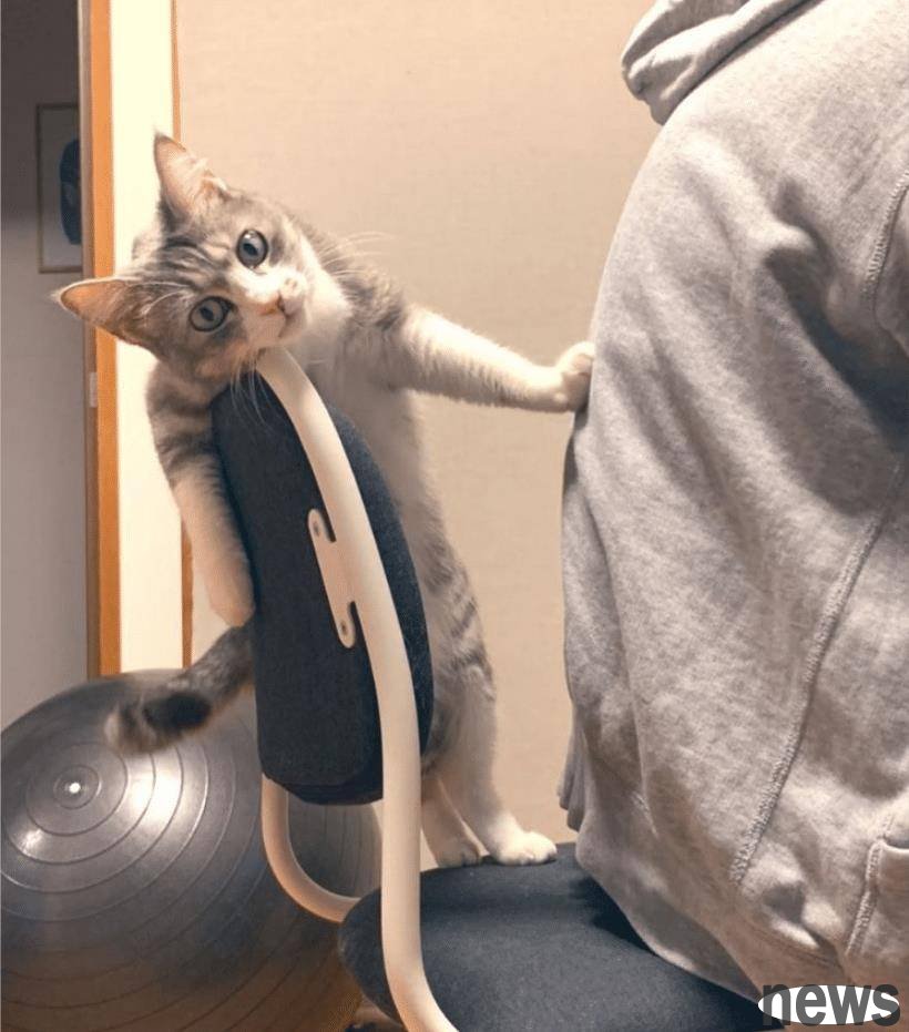 So Jito immediately jumped up again. He leaned his body on the back of the chair and held the back of the chair with one paw to prevent himself from falling. At this time, it started to push the owner's back hard with its free hand.