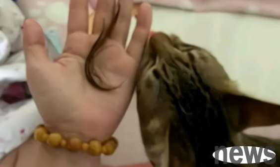 This naughty cat often secretly nibbles on the hair of the scavenger while she is sleeping, and every time he nibbles off a small handful.
