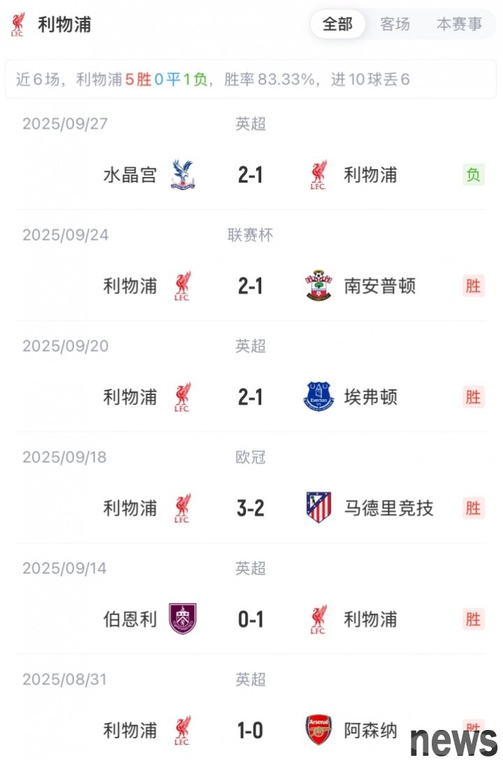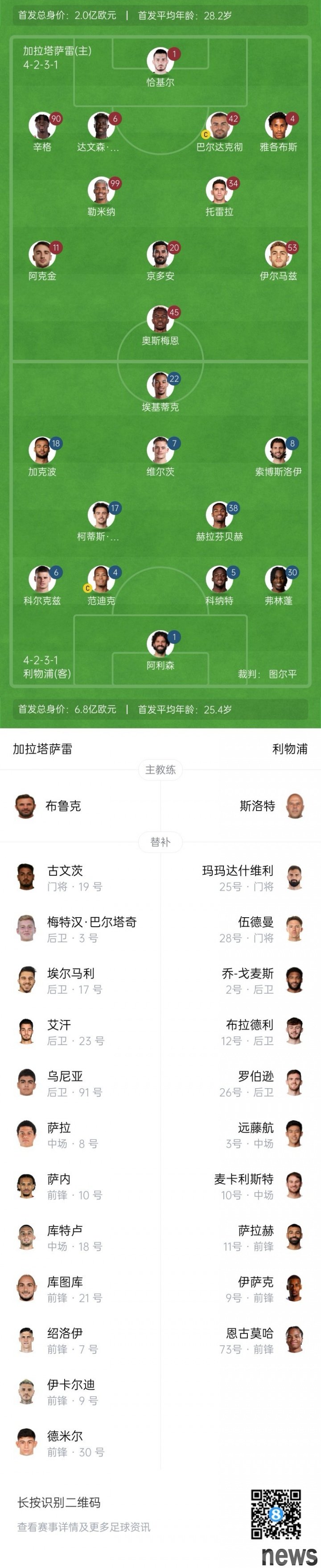 October 1st news In the second round of the Champions League stage, Liverpool's away challenge to Galatasaray is about to begin. The starter was made before the game, Salah substituted, and Wilz, Ekitic and Garkepo played.